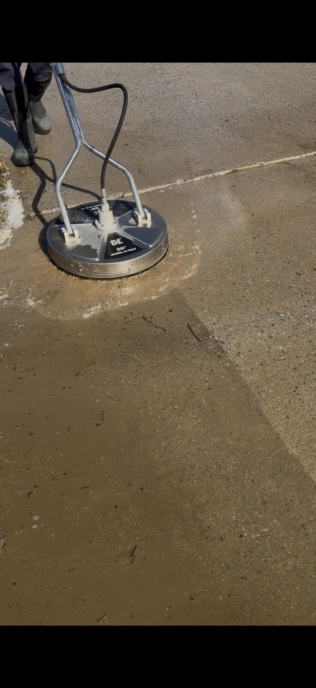 At the same time, we ran a surface cleaner on the concrete driveway. This allowed us to clean the concrete effectively and quickly, removing accumulated dirt and organic growth that had built up over years without professional treatment. Running the surface cleaner concurrently with the soft wash was a key part of the job, because it let us finish both the roof and the driveway in a matter of hours rather than returning for separate visits.